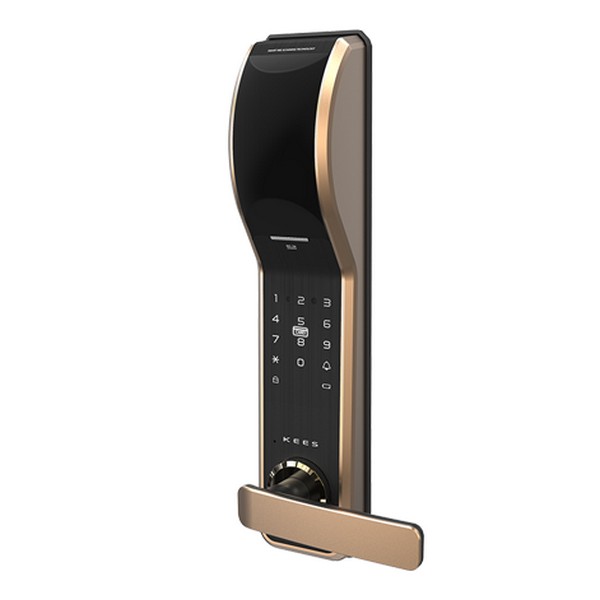 Khóa cửa Kees E8100-LK được làm bằng hợp kim nhôm cao cấp, mặt kính cảm ứng cường lực và cho phép người dùng mở cửa bằng 5 chức năng: Móng mắt, Smartphone, mật khẩu, thẻ từ, chìa cơ