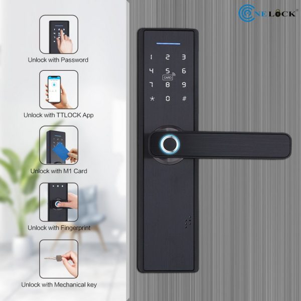 Onelock WS002 là dòng sản phẩm khóa cửa thông minh với 5 chức năng mở khóa: Smartphone, vân tay, mật khẩu, thẻ từ, chìa khóa cơ. Khóa được thiết kế để lắp đặt cho nhà ở, căn hộ, khách sạn với khả năng lưu trữ: 100 mã vân tay, 100 mật khẩu, 100 thẻ từ.